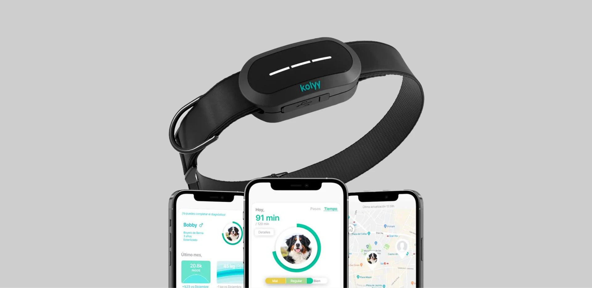 Kolyy redefine el concepto de diseño de producto tecnológico e inteligente aplicado al bienestar animal, transformando un simple accesorio en un dispositivo inteligente que conecta a los dueños con sus perros de forma segura y eficaz.