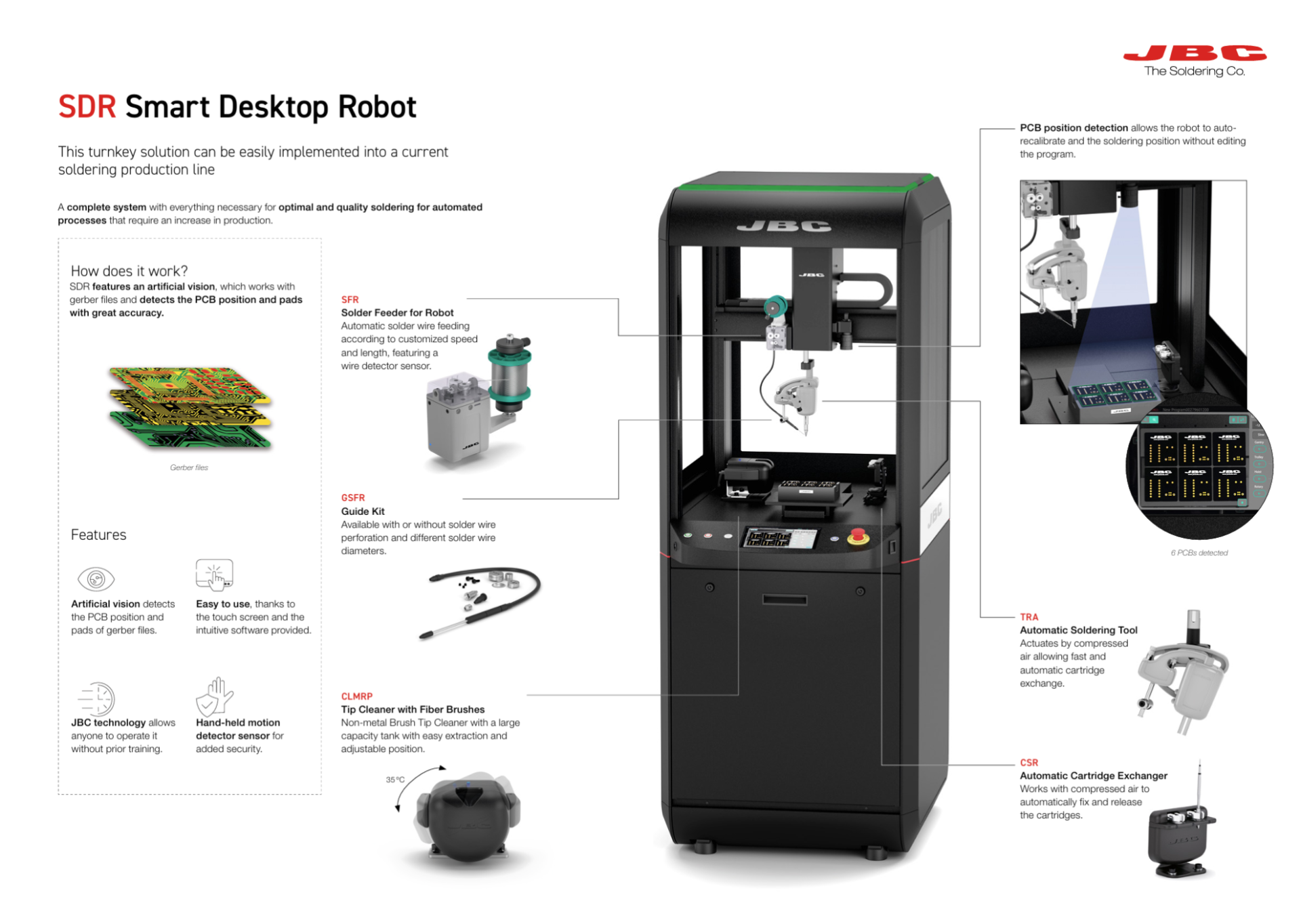 La nueva gama SDR de JBC Soldering nace con el objetivo de transformar el proceso de soldadura industrial mediante tecnología de última generación y un enfoque de diseño de producto innovador. En un contexto donde la precisión, la automatización y la eficiencia energética son esenciales, Tandem colaboró en el desarrollo de esta gama SDR, aportando su experiencia en diseño industrial, ingeniería y estrategia de producto.