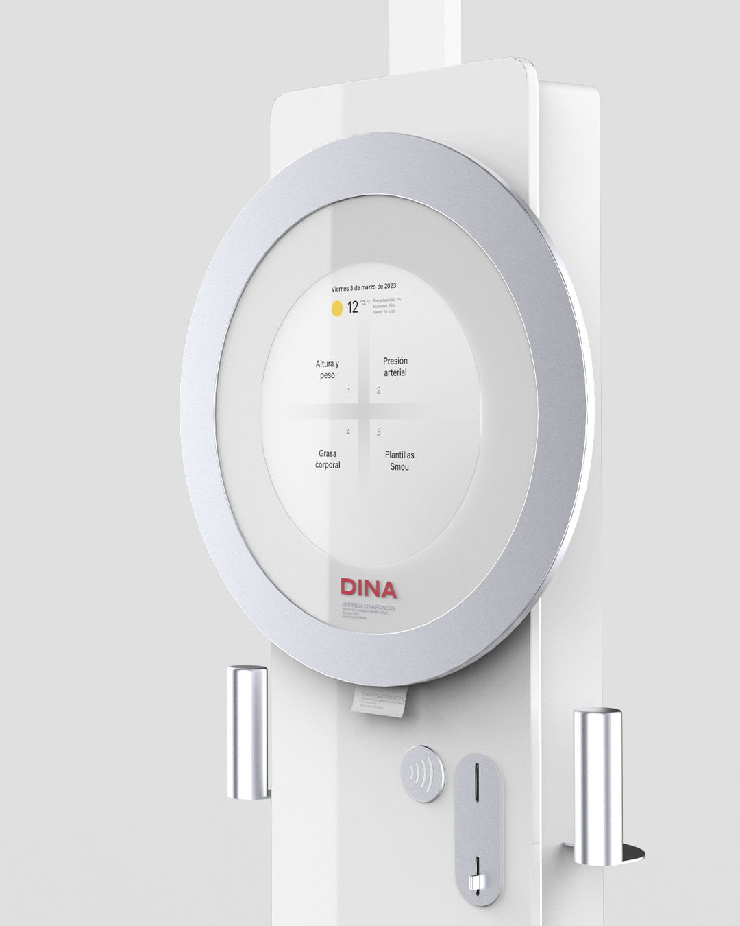 La báscula Dina Pondus nace de la necesidad de ofrecer soluciones inteligentes adaptadas a las nuevas demandas de salud y autocuidado. Mediante un proceso de diseño de producto vanguardista y personalizable, se creó un lenguaje formal limpio y elegante que refuerza la confianza en los espacios de farmacia, integrándose con facilidad en cualquier entorno.