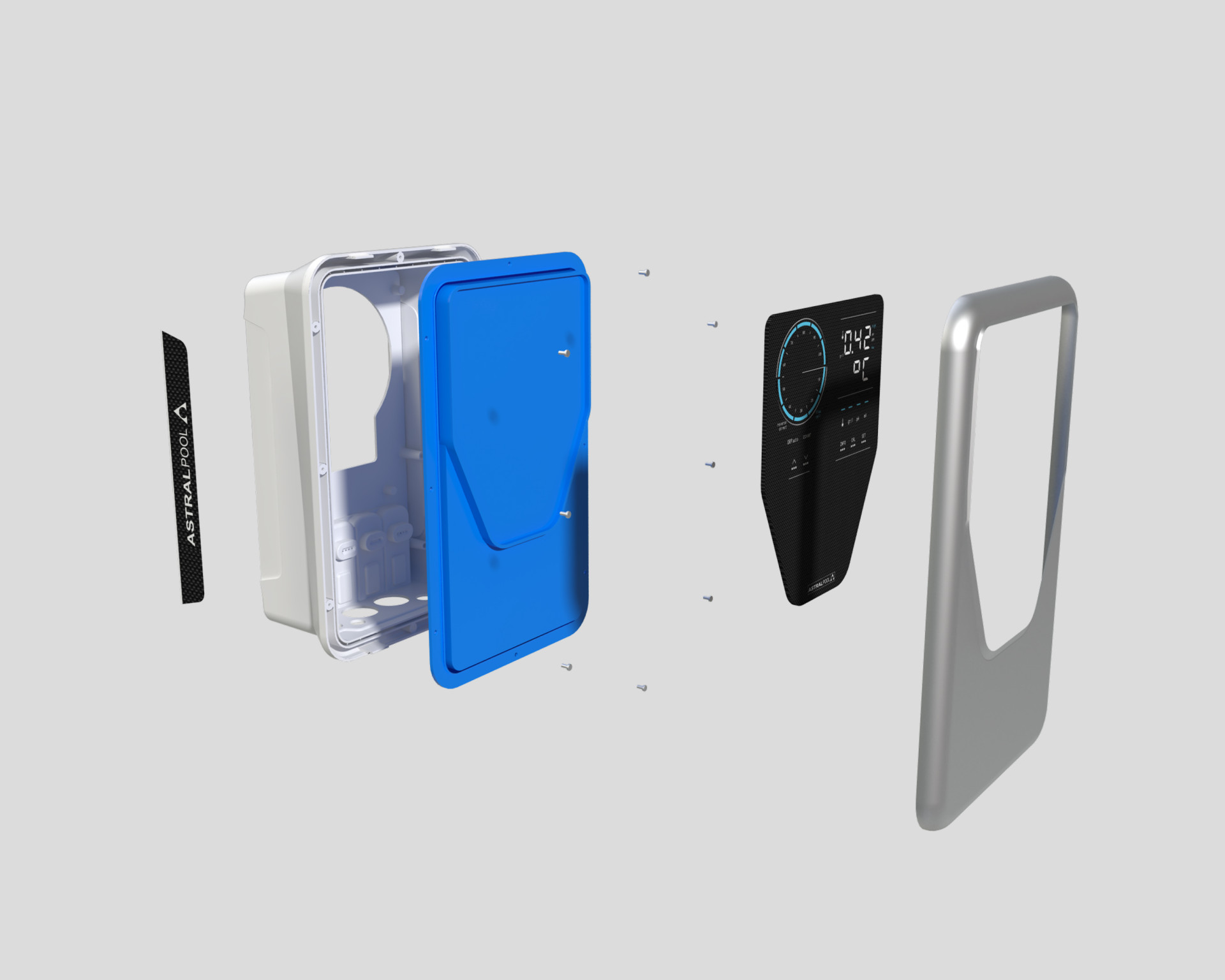Elite Connect es el resultado de un trabajo integral de diseño de producto estratégico, que combina tecnología, usabilidad e impacto visual. Su composición evita incrustaciones en las placas del electrodo y mejora la eficiencia energética, garantizando una desinfección óptima del agua. La innovación en Elite Connect se refleja en su interfaz táctil, que permite controlar parámetros como la salinidad y la temperatura con precisión y sencillez.