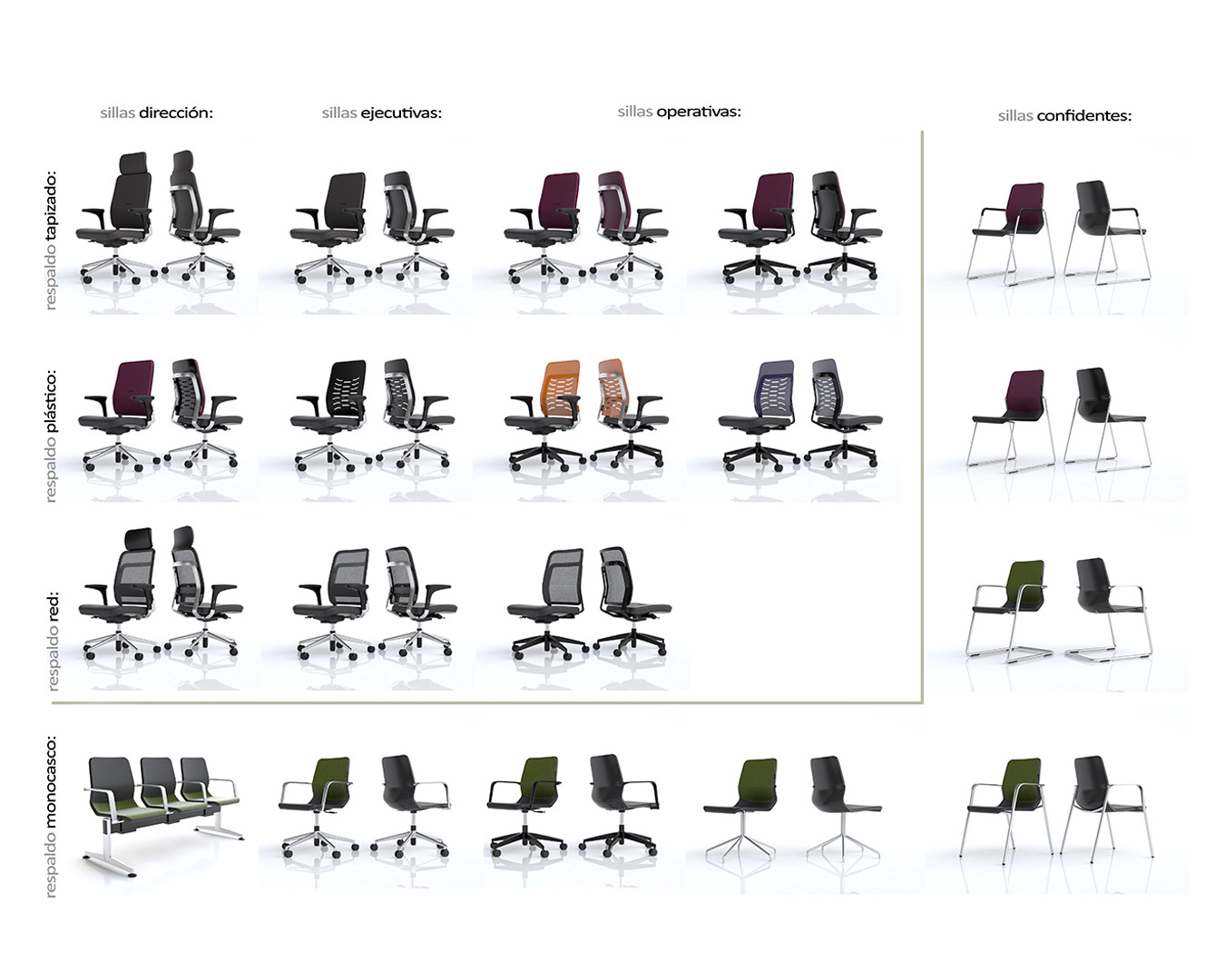 Cada modelo destaca por su equilibrio entre forma y función: líneas puras, materiales reciclables y una amplia variedad de acabados. Esta visión de diseño estratégico de producto convierte a Bros en una serie versátil y atemporal, capaz de integrarse en oficinas, zonas polivalentes y salas de espera.