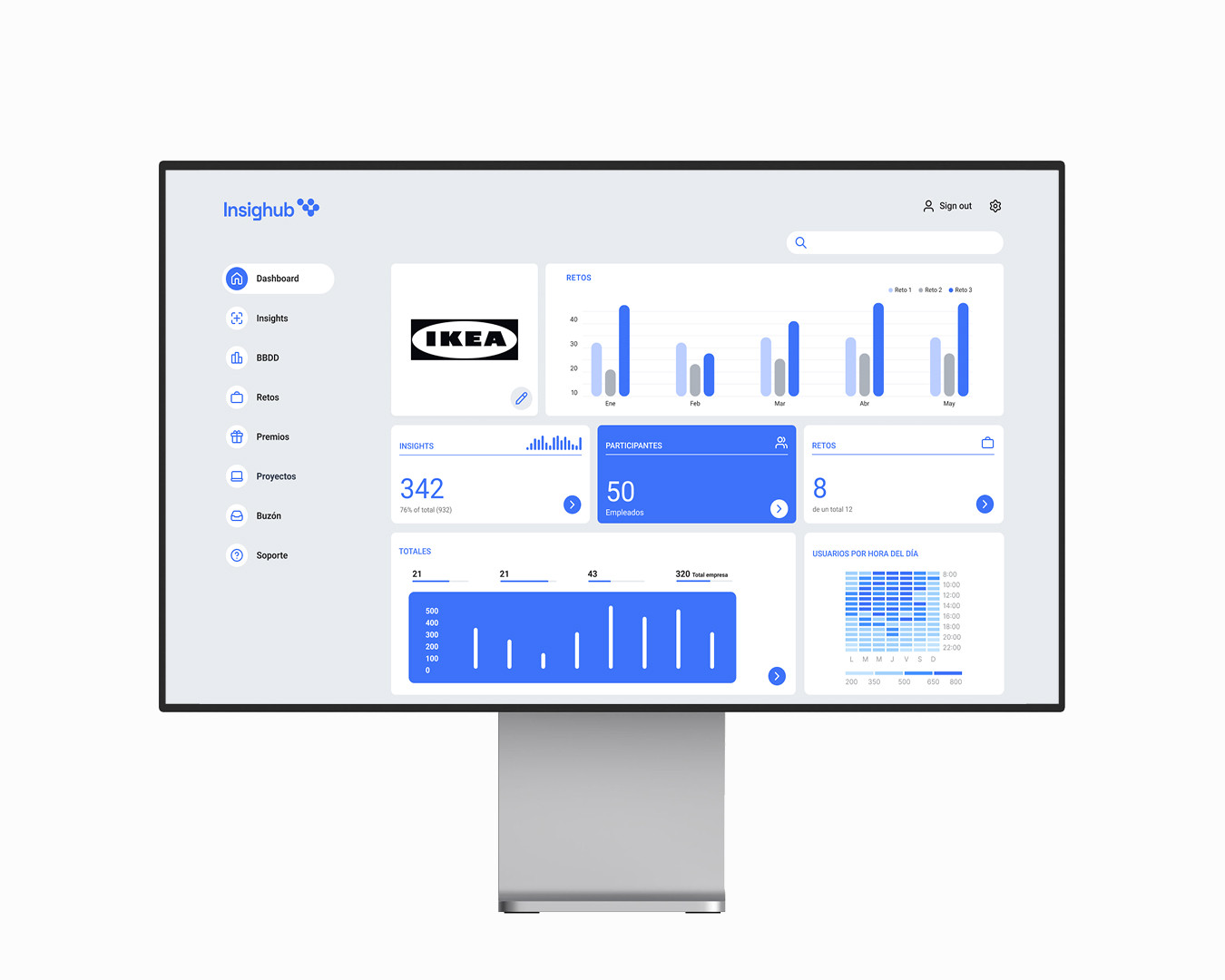 El diseño de Insighub se orienta a optimizar la experiencia del usuario y la usabilidad. Esta plataforma digital ofrece un entorno flexible que se adapta a diferentes sectores y tamaños de organización, consolidando la innovación como una práctica estratégica y continua.